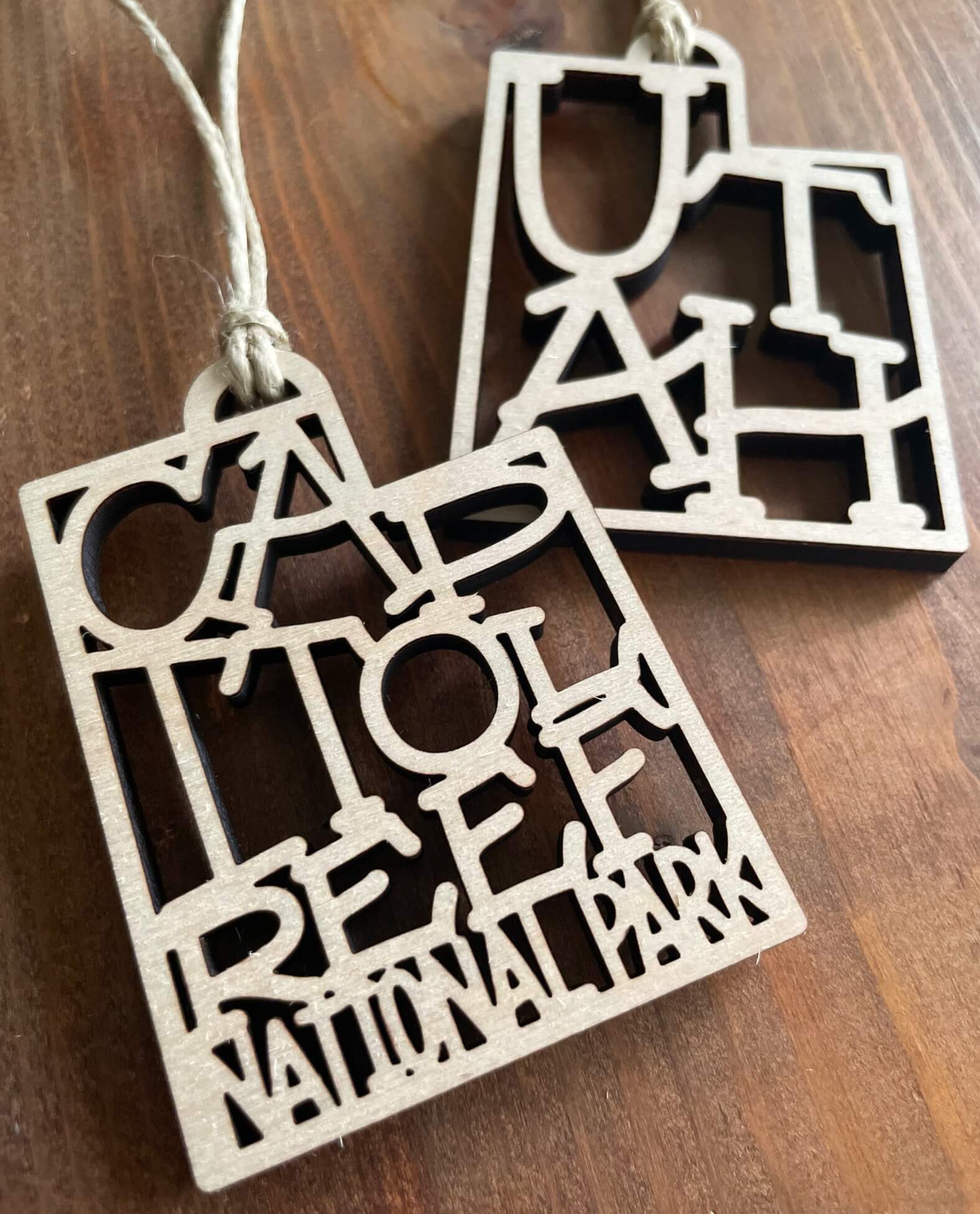 Hand lettered Capitol Reef National Park, UT Ornament made out of laser cut wood.