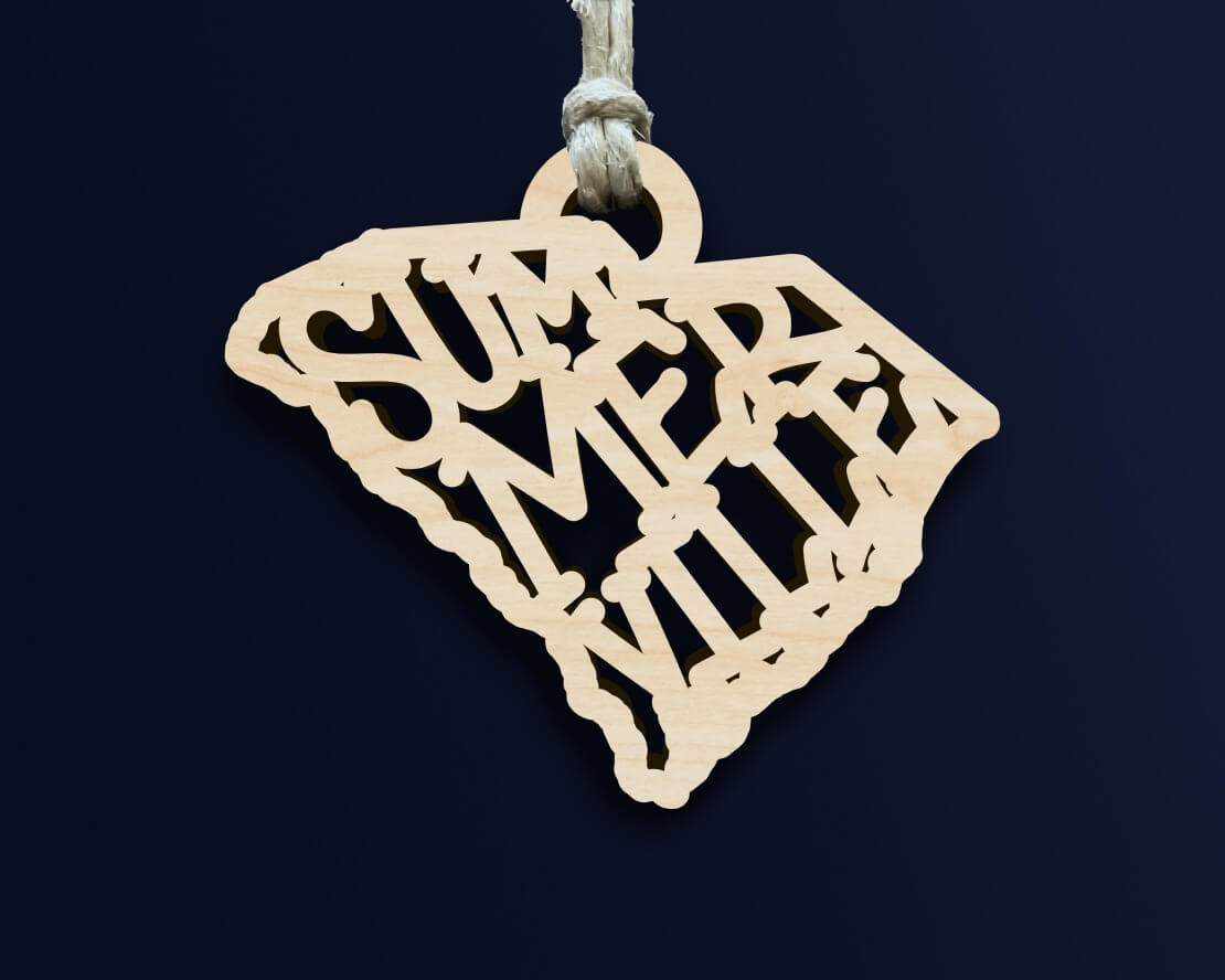 Hand lettered Conway, SC Ornament made out of laser cut wood.
