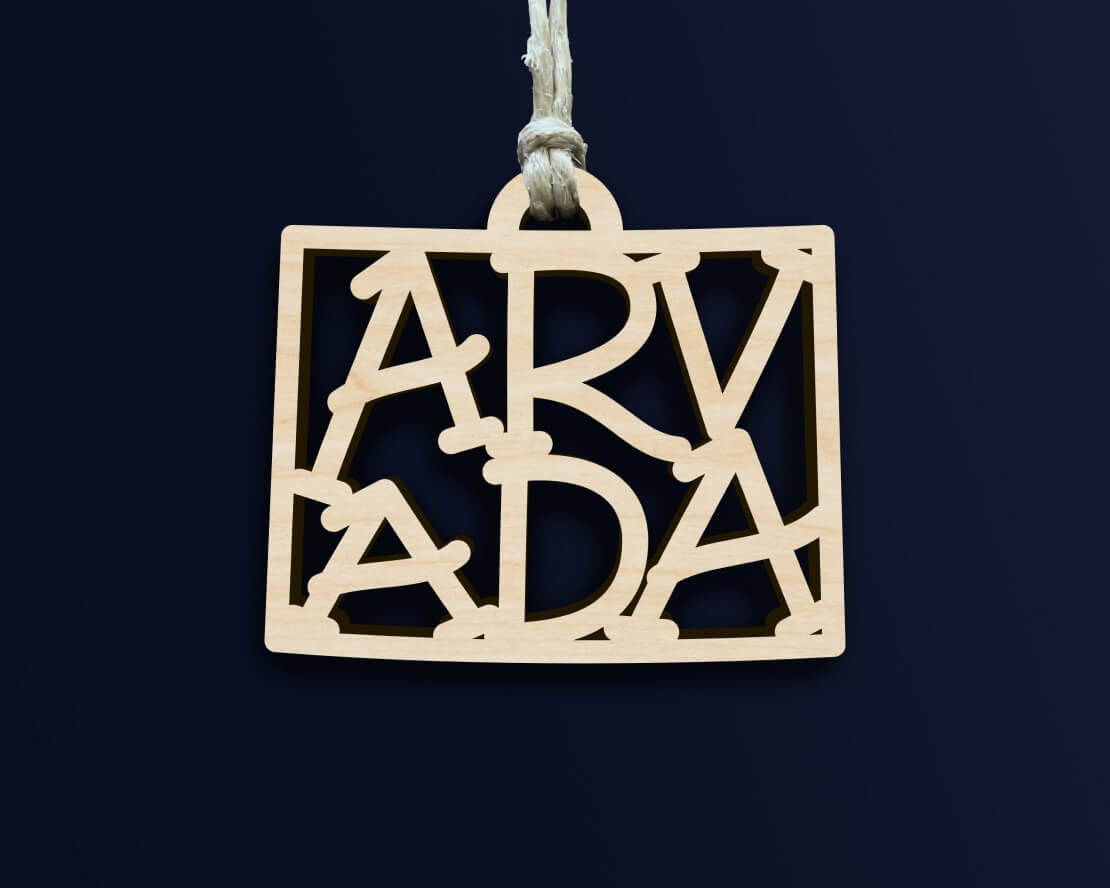 Hand lettered Fort Collins, CO Ornament made out of laser cut wood.