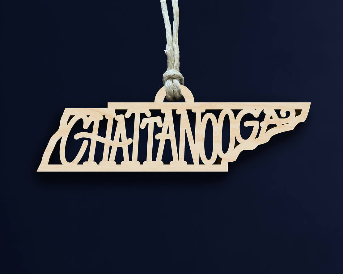 Hand lettered Kingsport, TN Ornament made out of laser cut wood.