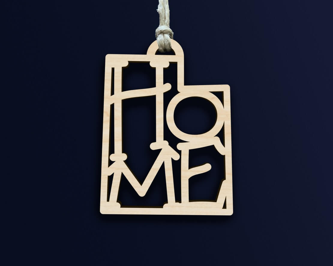 Hand lettered Provo, UT Ornament made out of laser cut wood.