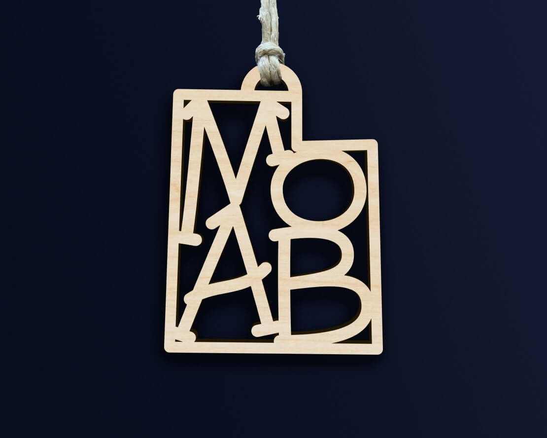 Hand lettered Utah, UT Ornament made out of laser cut wood.
